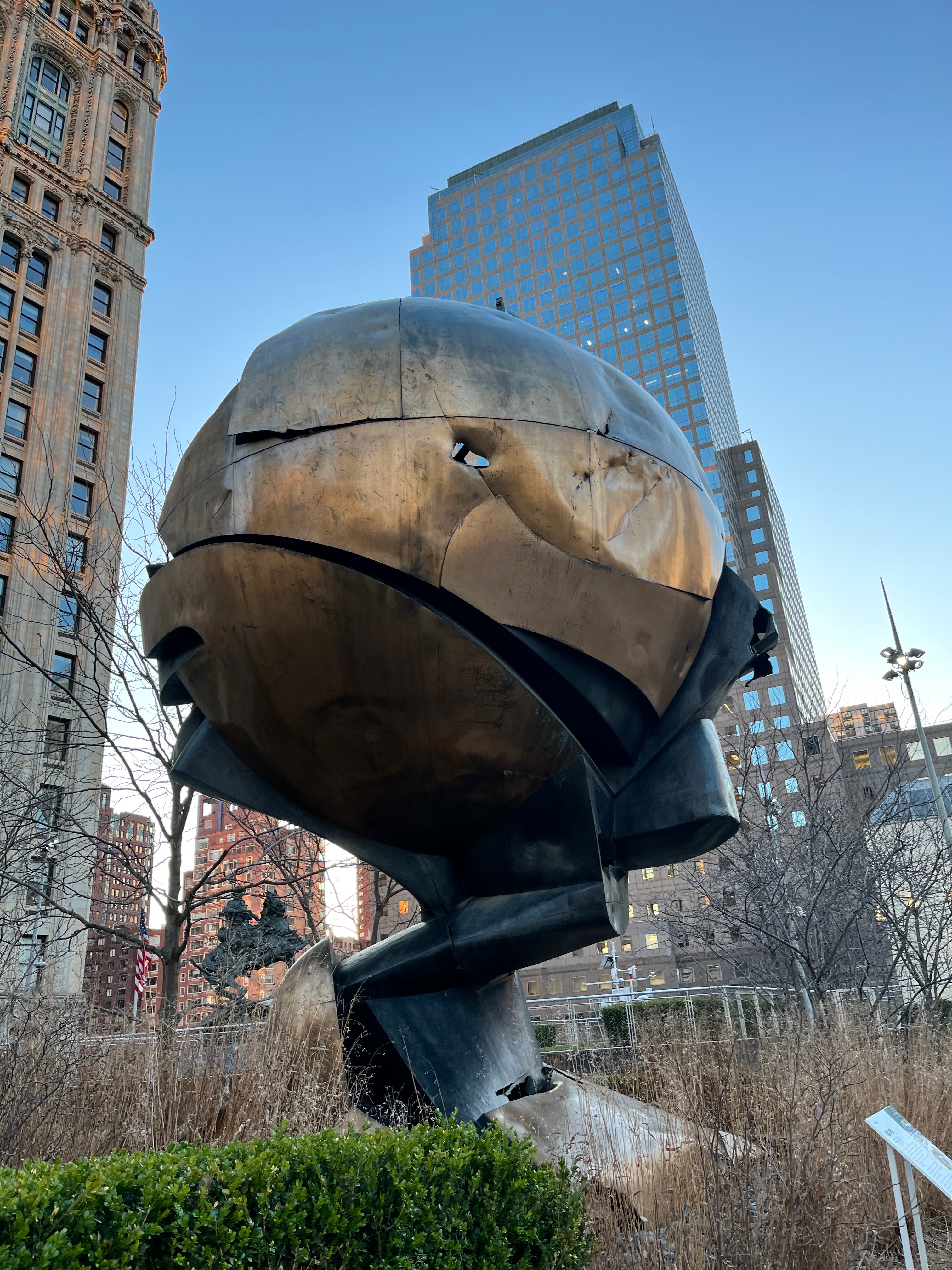 Centre: The ball of peace, that survived 9/11.